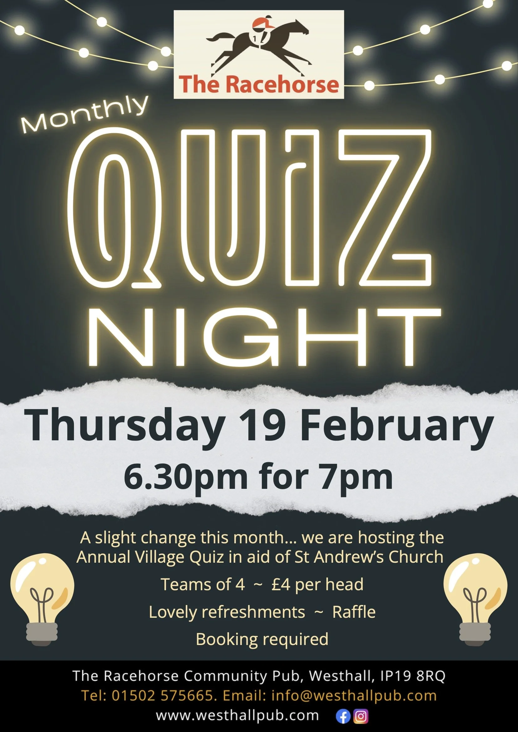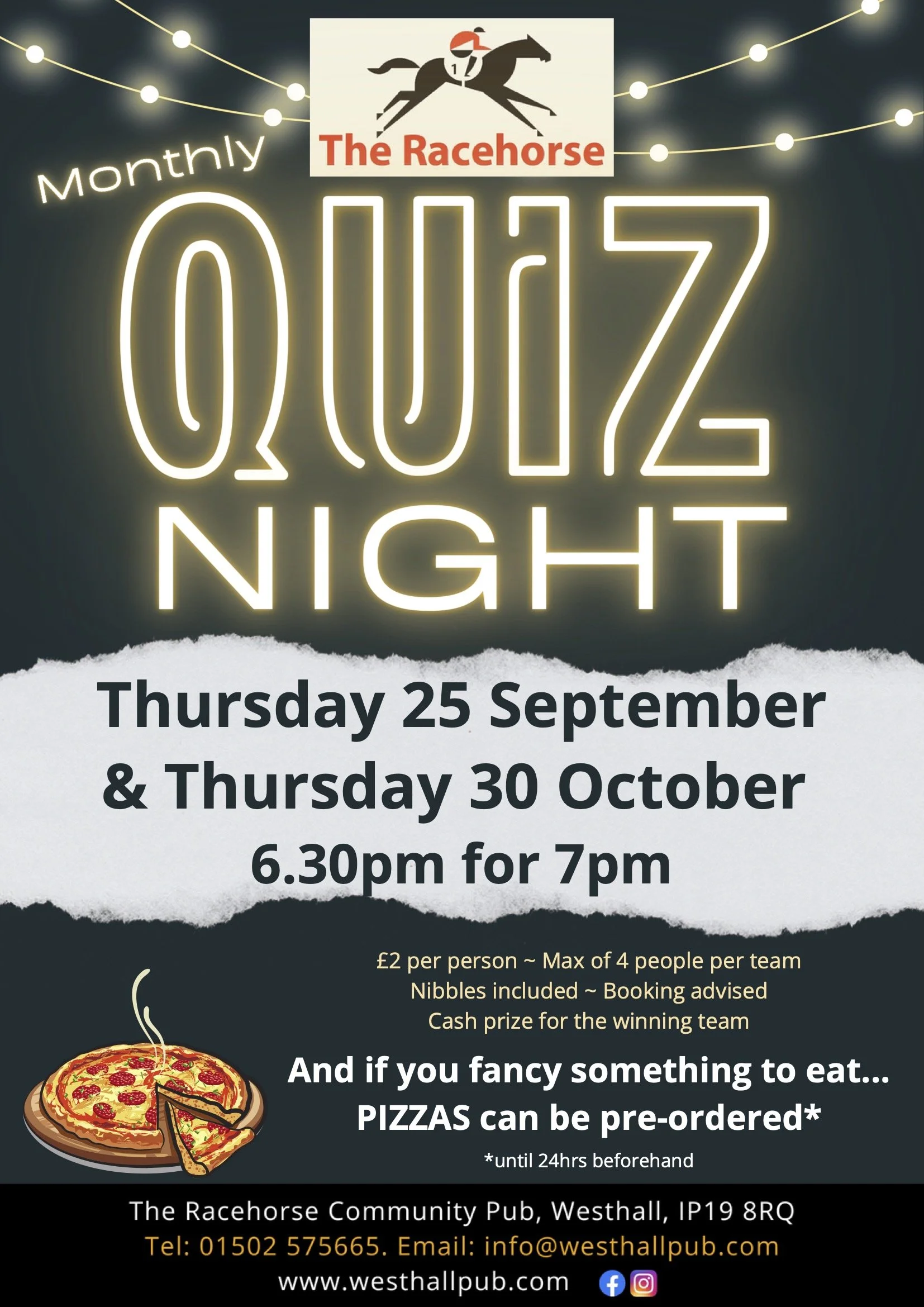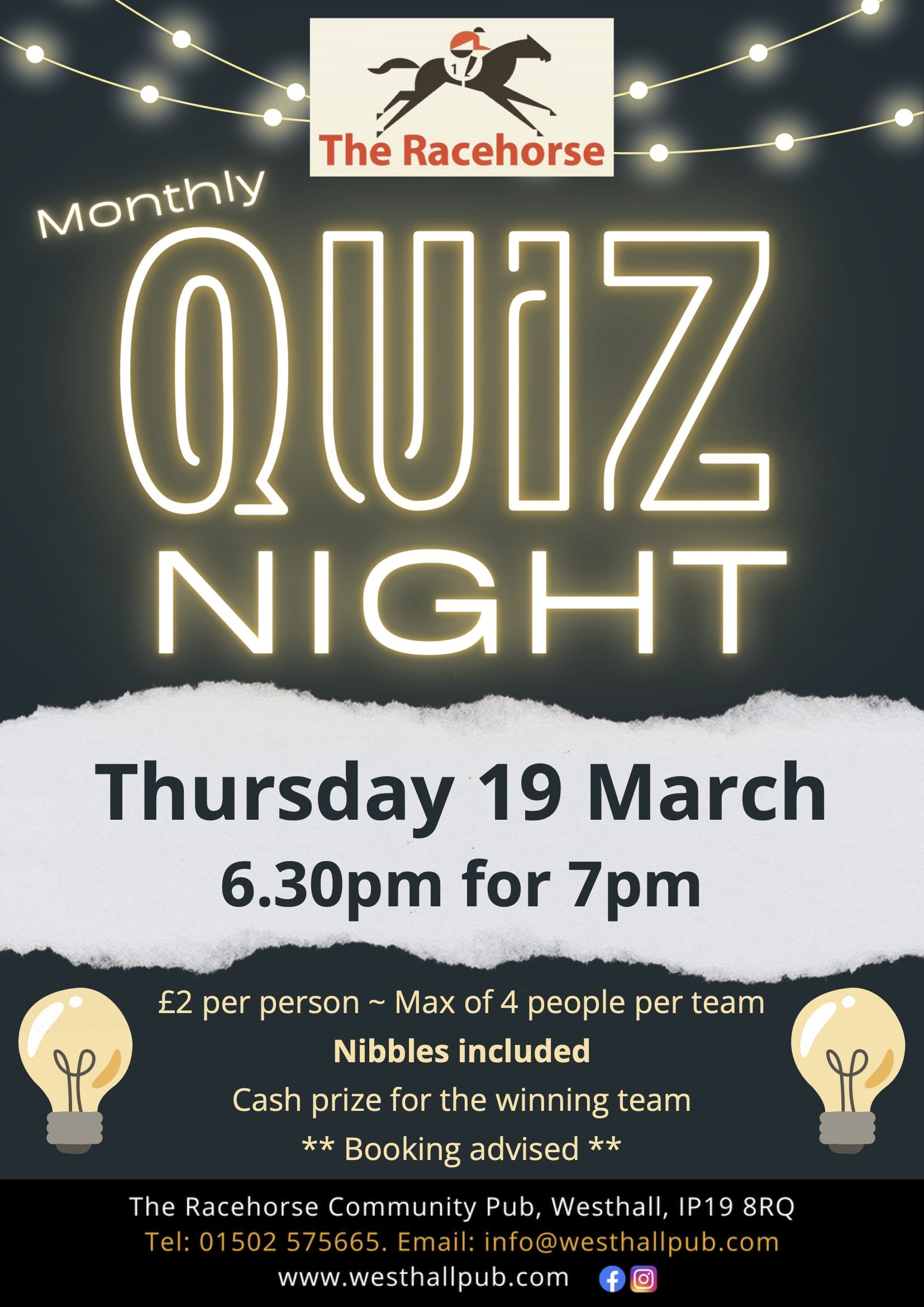*except on the Thursday evening of our Monthly Quiz Night - please call to check