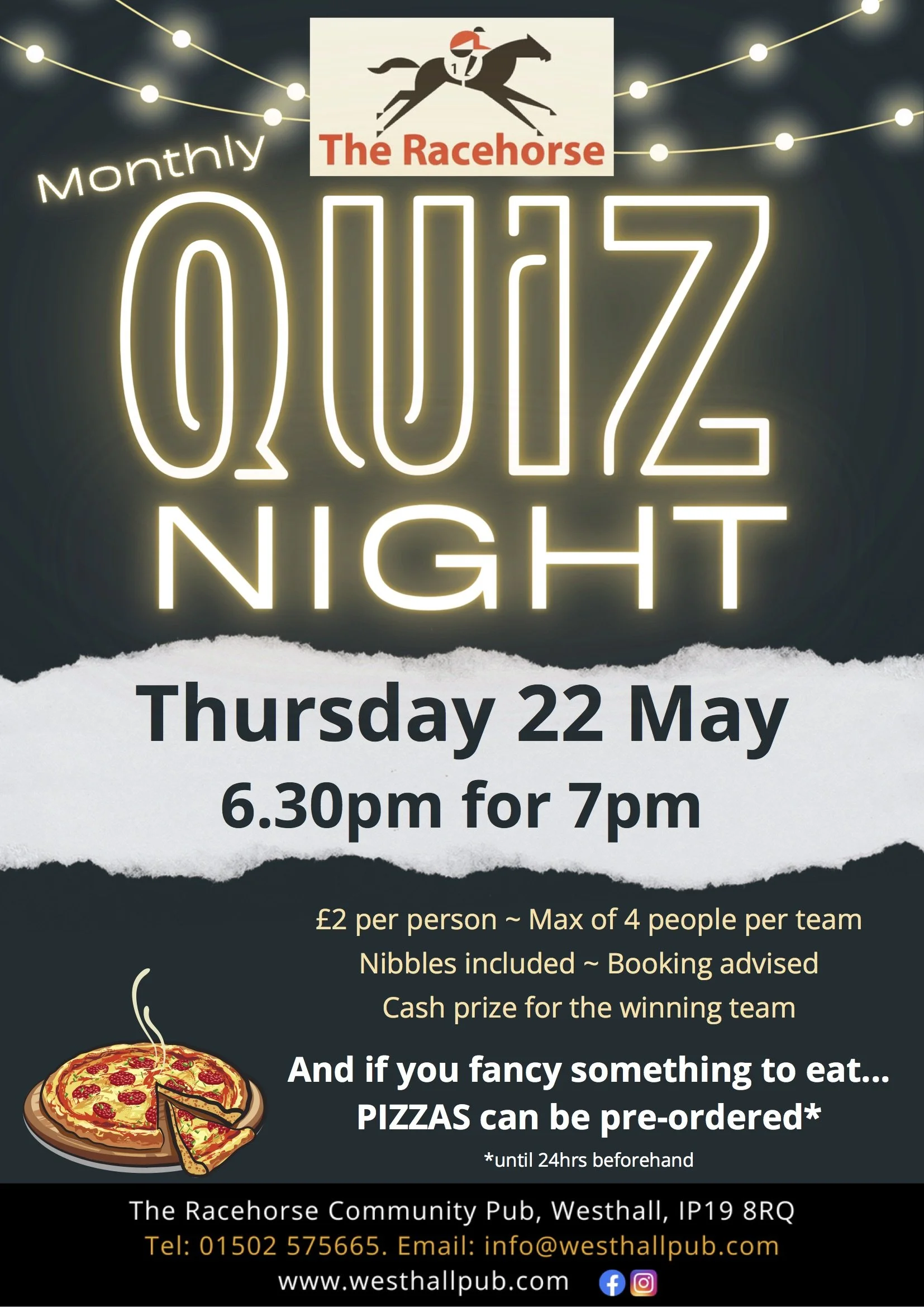 Monthly Quiz Night: Thur 22 May George HarveyMay 2, 2025 Facebook0 Twitter LinkedIn0 Reddit Tumblr Pinterest0 0 Likes